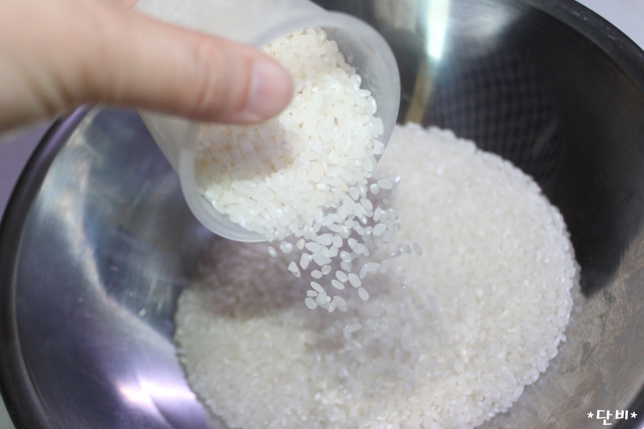 바로 쌀을 먼저 담고